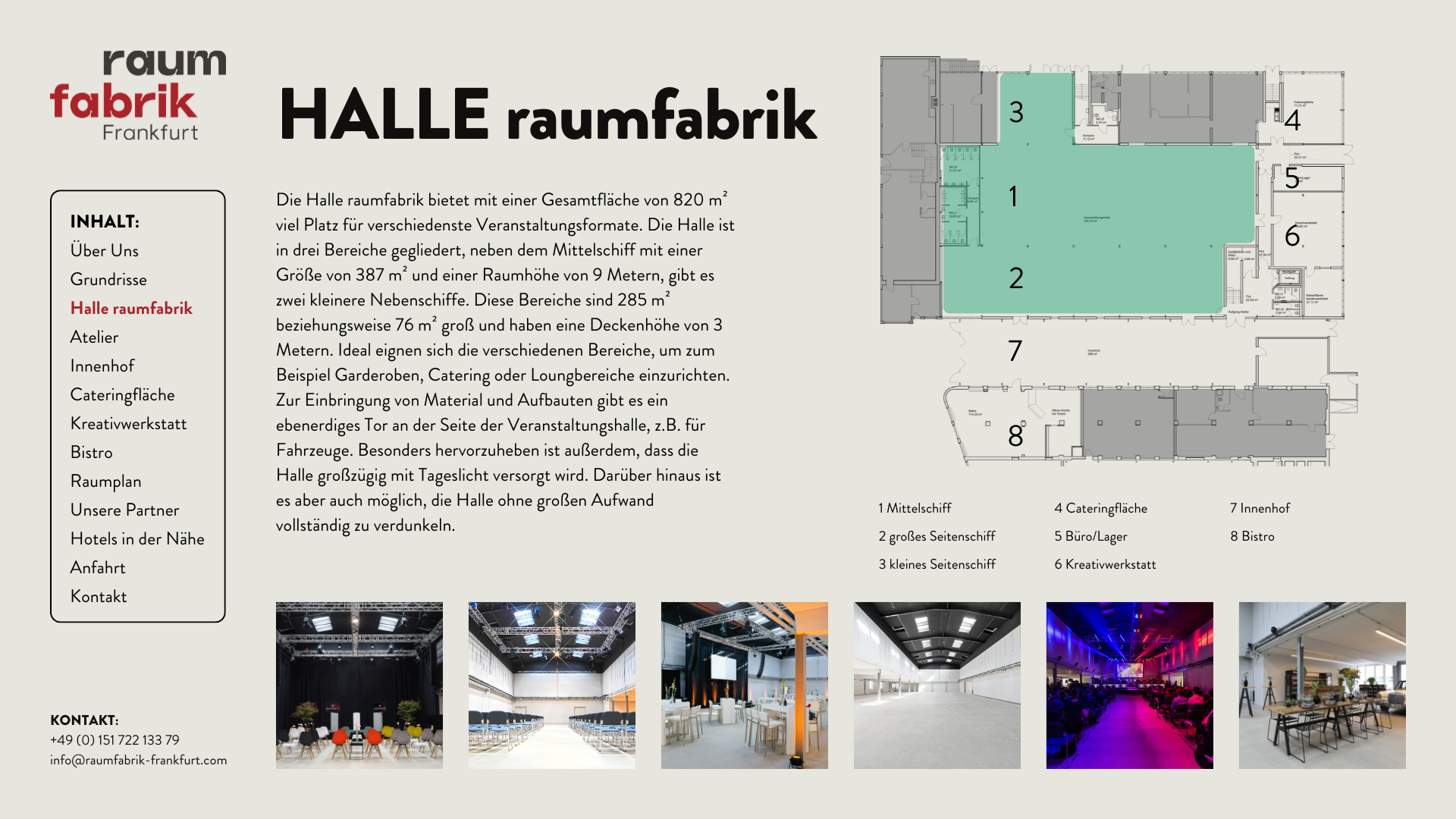 Hier finden Sie verschiedene Pläne in unterschiedlichen Formaten und viele weitere Informationen zur raumfabrik und unseren Nebenflächen. Haben Sie etwas nicht gefunden, dann melden Sie sich gerne bei uns.